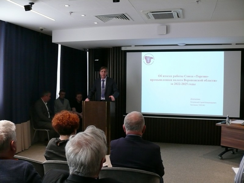 С отчетом об итогах работы Союза «Торгово-промышленная палата Воронежской области» в период 2022–2025 годов выступил президент ТПП Сергей Петровский. Он ознакомил собравшихся с результатами деятельности палаты по увеличению ее членской базы, рассказал об услугах, оказываемых ТПП деловому сообществу региона (сейчас палата оказывает порядка 30 услуг, некоторые из них являются уникальными не только для Воронежской области, но и для России в целом), сообщил о работе над совершенствованием регионального инвестиционного стандарта в сторону упрощения разрешительных процедур и сокращения сроков прохождения документации. В прошлом году работа ТПП Воронежской области по улучшению инвестиционного климата в регионе была отмечена благодарностью губернатора.